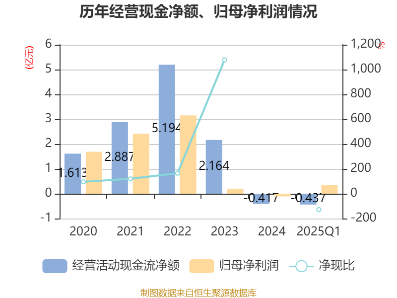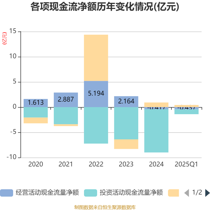 截至2025年一季度末,公司经营活动现金流净额为-4366.35万元,同比增加5041.79万元;筹资活动现金流净额4200.28万元永利配资,同比减少6634.43万元;投资活动现金流净额-9677.04万元,上年同期为-2.65亿元。