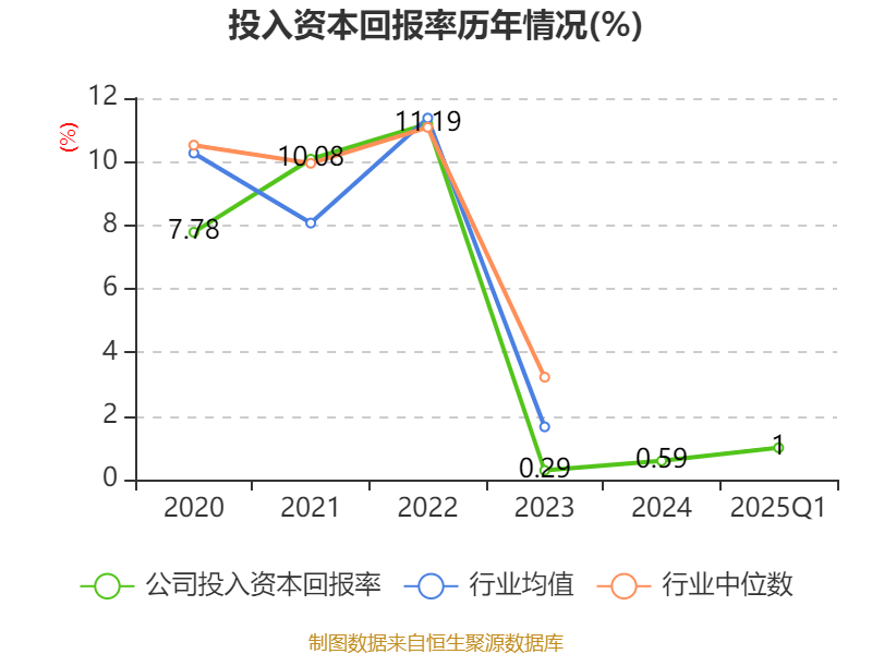 盈利能力方面, 2025年一季度公司加权平均净资产收益率为1.37%,同比上升1.5个百分点。公司2025年第一季度投入资本回报率为1%,较上年同期上升1.08个百分点。