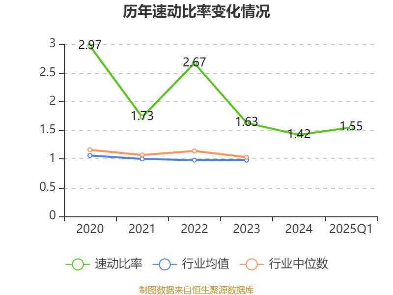 2025年第一季度,公司流动比率为2.1,速动比率为1.55。