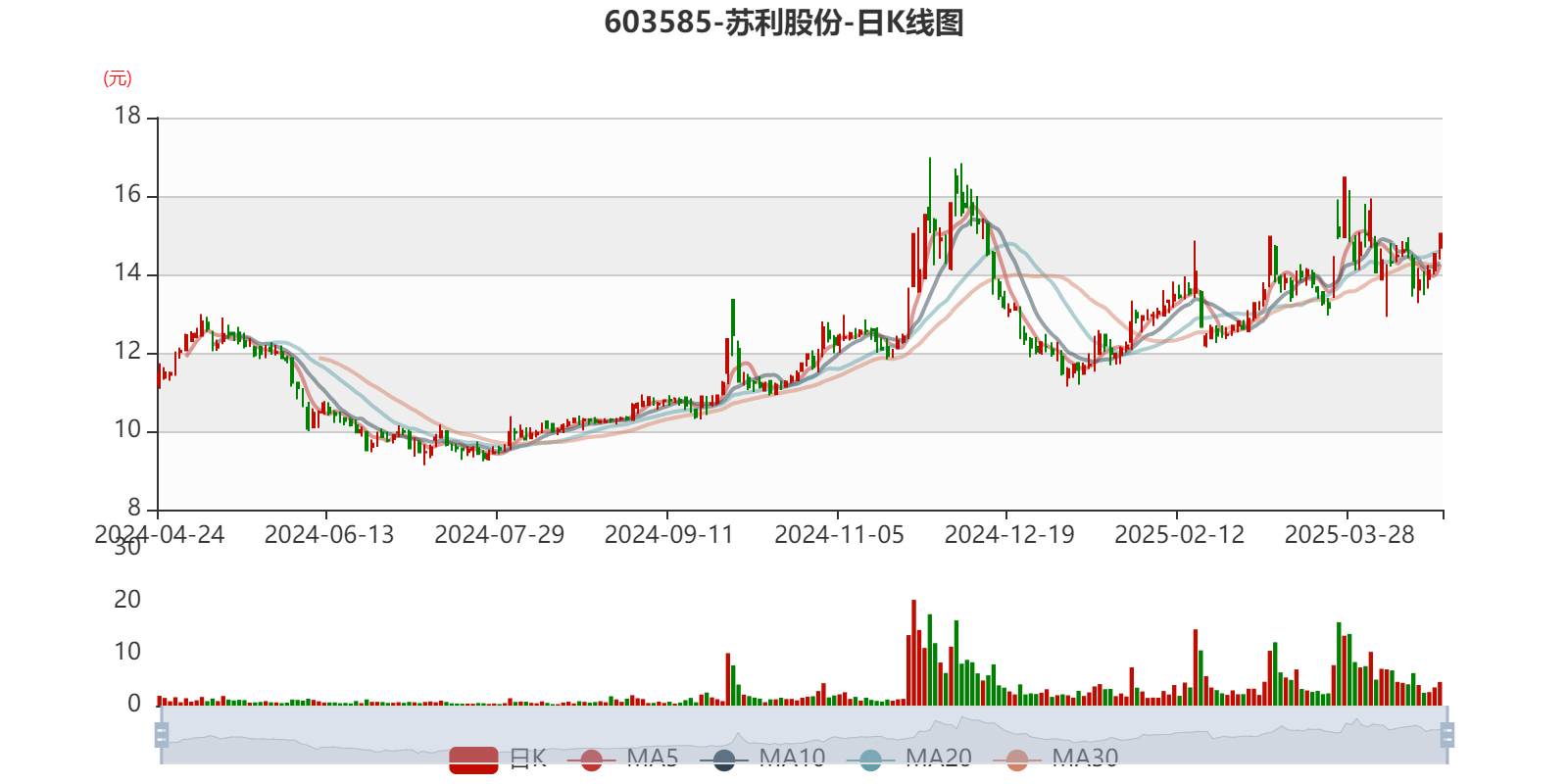 中证智能财讯苏利股份(603585)4月24日披露2025年第一季度报告。公司实现营业总收入6.47亿元,同比增长33.32%;归母净利润3413.28万元,同比扭亏;扣非净利润3407.73万元,同比扭亏;经营活动产生的现金流量净额为-4366.35万元,上年同期为-9408.14万元;报告期内,苏利股份基本每股收益为0.19元,加权平均净资产收益率为1.37%。