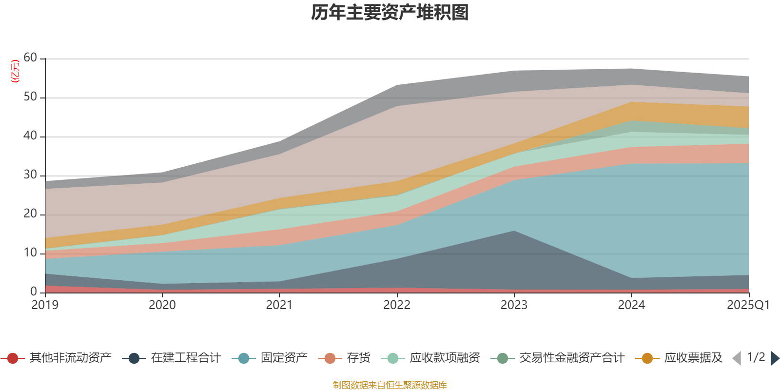 资产重大变化方面,截至2025年一季度末,公司应收款项融资较上年末减少40.84%,占公司总资产比重下降2.62个百分点;交易性金融资产合计较上年末减少41.45%,占公司总资产比重下降1.99个百分点;应收票据及应收账款较上年末增加17.02%,占公司总资产比重上升1.76个百分点;存货较上年末增加17.72%,占公司总资产比重上升1.62个百分点。