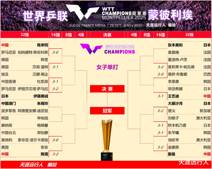 WTT冠军赛蒙彼利埃站第三比赛日赛程+观战指南